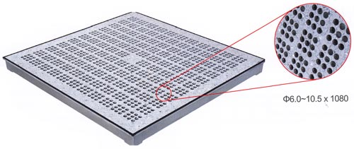 铝合金地板采用高压压铸工艺,铝锭熔化后,经高压压铸机一次性真空压铸成形,融合了铝合金耐腐蚀、高强度的特性,地板表面可根 据需要进行环氧喷粉或镍铬电镀,从而表面达到柔光、防腐、耐磨效果。